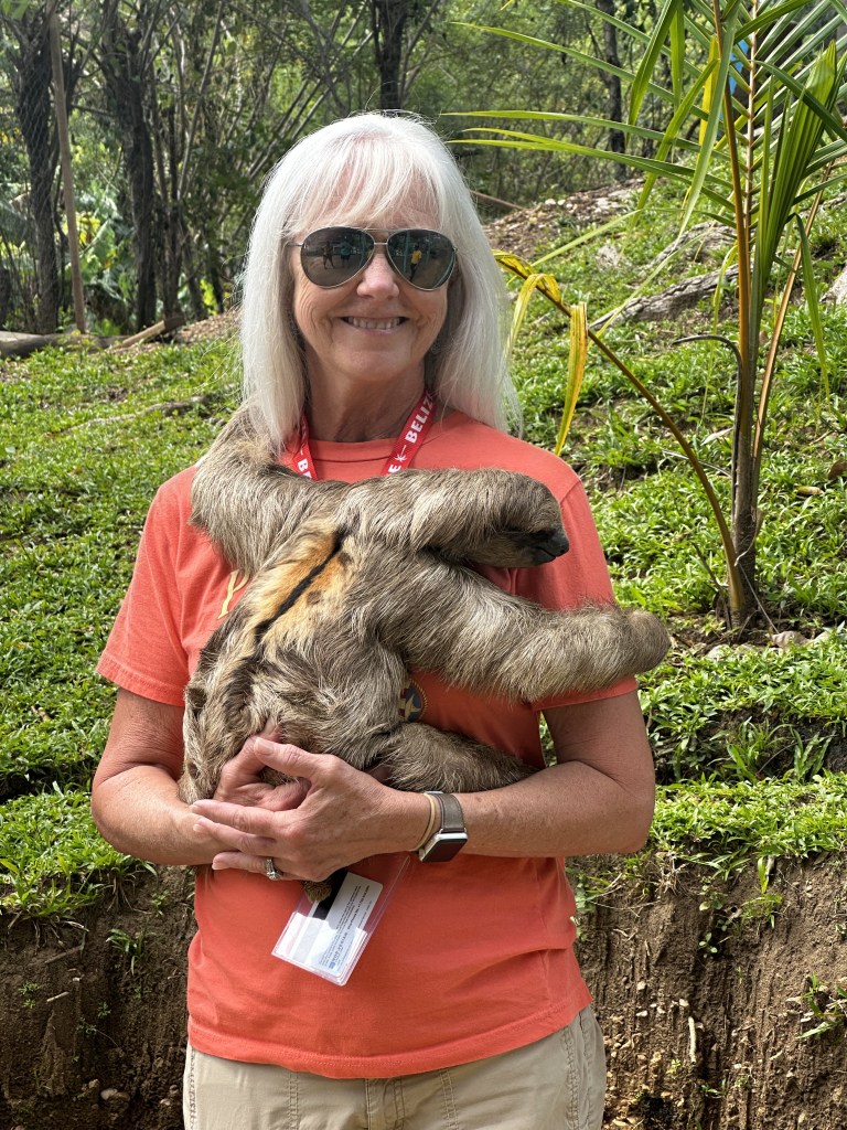 Our latest animal encounter was on our recent cruise where we went to a sanctuary that had sloths and monkeys. Despite my attempt to research and find an ethical facility, little information is available on the various “sanctuaries” providing sloth and monkey encounters on the island of Roatan. Probably the most popular one is Daniel Johnson’s Monkey and Sloth Hangout. I never could find out much about how their animals are housed and treated, but I do know that hundreds of people go through there on a busy port day. That alone concerns me. From what I have heard from people who have been there, they must limit the amount of time their sloths are being handled as we heard complaints that they showed up and were not allowed to hold sloths due to the time of the day. So that is something.