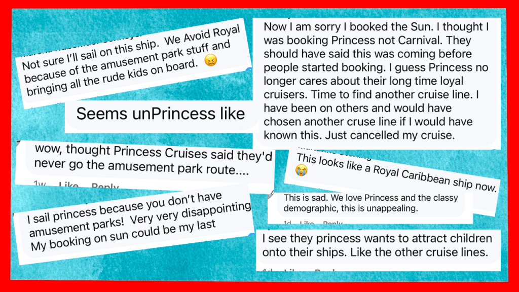 We talked last week about the new family area on Princess’ next Sphere-class ship, the Sun Princess. At that time I questioned how well the changes would go over with the older crowd that makes up the majority of Princess’ clientele. A quick look at feedback on social media shows that while there are some who are excited for the ship, and even some exited for the new family area itself, many are very upset about this new direction.
